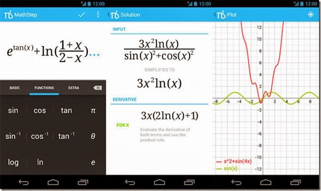 Esta calculadora simbólica para Android nos permite simplificar y resolver ecuaciones, derivadas, integrales, calcular límites, obtener la serie de Taylor y Maclaurin de una función, representar gráficas y más operaciones matemáticas.